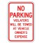 No Parking Violators Will be Towed at Owner's Expense 12"x18" Metal Sign Pre-punched 3/8" Mounting Holes Individual Sign