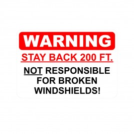 Warning Stay Back 200 Ft. Not Responsible for Broken Windshields Truck Decal
